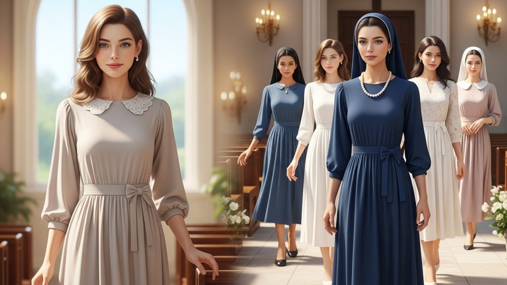 चर्च के लिए कई तरह की ड्रेस शैलियाँ हैं जो सुंदर और शालीन दोनों हो सकती हैं। यहाँ कुछ लोकप्रिय और उपयुक्त विकल्प दिए गए हैं: