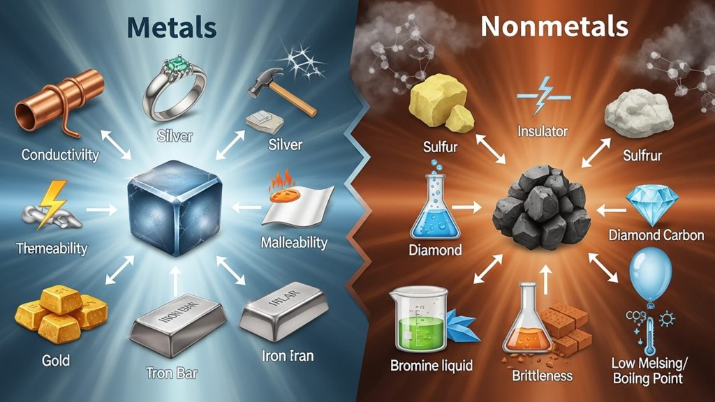 हमारे दैनिक जीवन में, आपके स्मार्टफोन से लेकर घर बनाने वाले स्टील तक, हर जगह धातु और अधातु का गहरा प्रभाव दिखता है। क्या आपने कभी सोचा है कि क्यों सोना बिजली का उत्कृष्ट सुचालक है, जबकि प्लास्टिक, जो मुख्य रूप से अधातु तत्वों से बना है, कुचालक होता है? आधुनिक तकनीक में, इलेक्ट्रिक वाहनों की बैटरियों में लिथियम जैसे धातुओं का उपयोग और सौर पैनलों में सिलिकॉन जैसे अधातुओं की महत्वपूर्ण भूमिका उनके मूलभूत रासायनिक और भौतिक गुणों में निहित है। इन्हीं विशिष्ट गुणों के कारण वे अलग-अलग व्यवहार करते हैं। आइए, इन पदार्थों के निर्माण खंडों और उनके उपयोग को समझने के लिए, धातु और अधातु में अंतर को आसान शब्दों में गहराई से जानें।