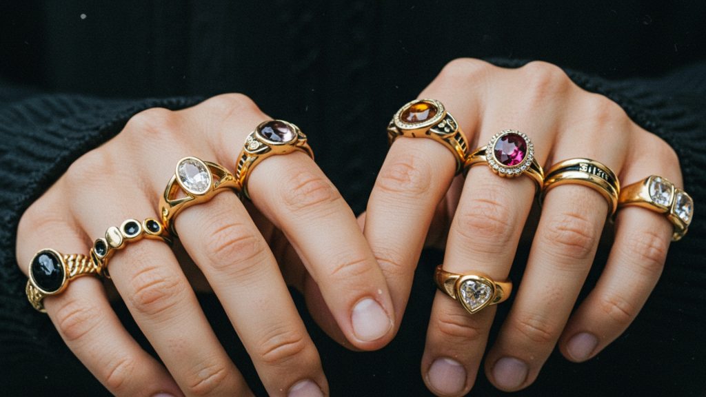 उनकी कई अंगूठियां विंटेज या एंटीक स्टोर से ली हुई लगती हैं, जिनमें पुरानी दुनिया का आकर्षण और कहानी होती है।
