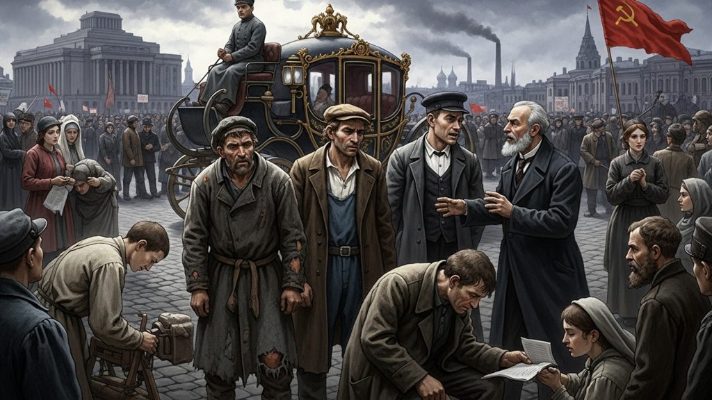 - आर्थिक पतन: युद्ध ने रूसी अर्थव्यवस्था को तबाह कर दिया। कारखाने सैन्य उत्पादन में व्यस्त थे, जिससे उपभोक्ता वस्तुओं की कमी हो गई। कीमतें आसमान छू रही थीं, और शहरों में भोजन की भारी कमी थी।
