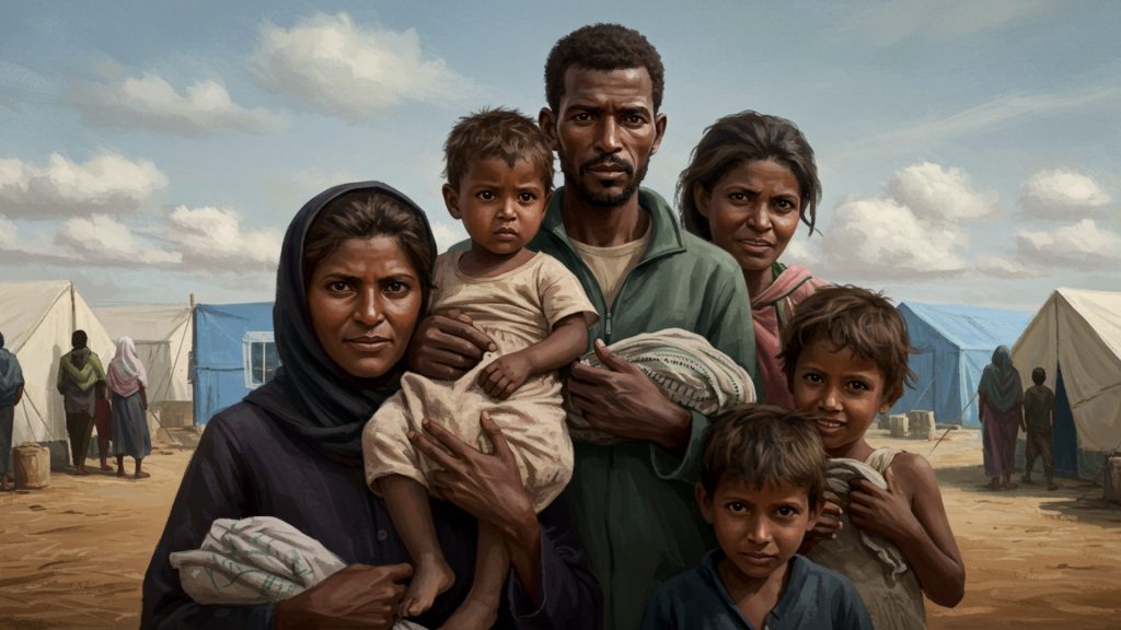 दुनिया भर में शरणार्थी समस्या का एक मार्मिक चित्रण जो मानवीय संकट को दर्शाता है।