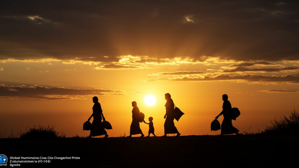 दुनिया भर में शरणार्थी समस्या के मानवीय पहलुओं और वैश्विक प्रभावों को दर्शाती एक मार्मिक तस्वीर।