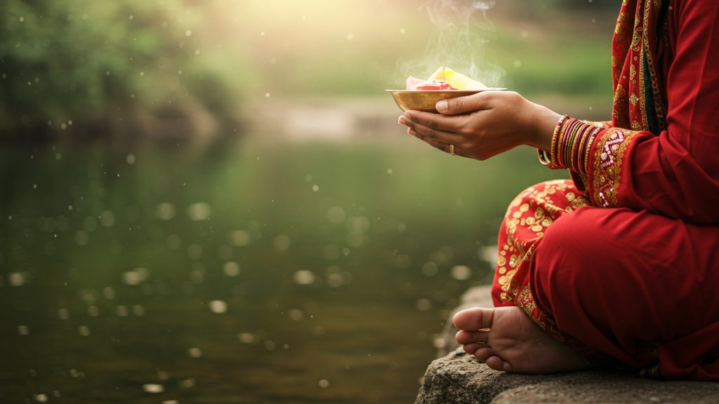 - पितृ तर्पण (पूर्वजों को अर्पण):